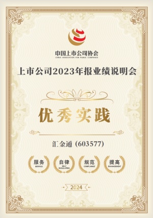 在中國上市公司協(xié)會“年報業(yè)績說明會實踐”評選中,匯金通連續(xù)兩年入選“年報業(yè)績說明會優(yōu)秀實踐”。